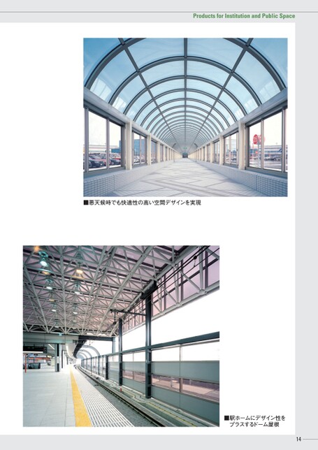 14ProductsforInstitutionandPublicSpace■悪天候時でも快適性の高い空間デザインを実現■ホームにデザイン性をプラスするドーム屋根