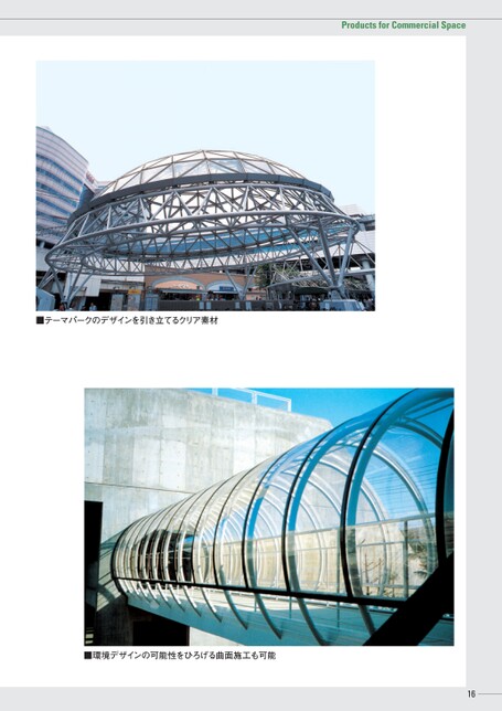 16ProductsforCommercialSpace■テーマパークのデザインを引き立てるクリア素材■環境デザインの可能性をひろげる曲面施工も可能